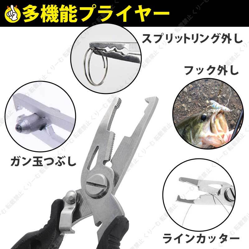 フィッシュグリップ セット 赤 プライヤー レッド スプリット リング オープナー フックレンチ キャッチャー 魚つかみ 釣り 釣具 針 ナイフ